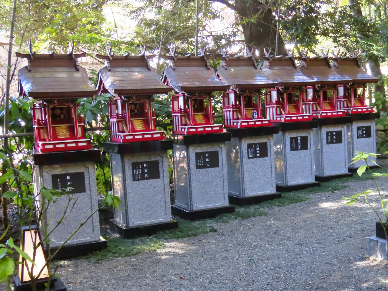 日本武尊 五十猛命(いたけるのみこと) 大己貴命(おおなもちのみこと)の3柱を主祭神として、稲荷神社・柿本社・天神社を相殿に祀る。