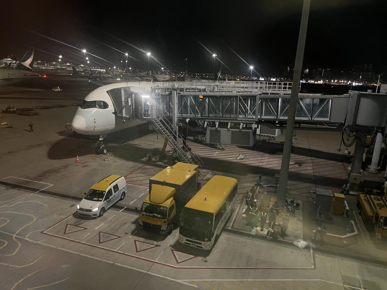 ここで機材を確認しに行くと、なんとなく見覚えのある番号で、写真を見返すと行きに乗ったのと同じ機材「B-LRD」でした。しかも、前回乗ってからは香港で駐機していたようなので、連続で搭乗するのは私くらいではないかと思います。