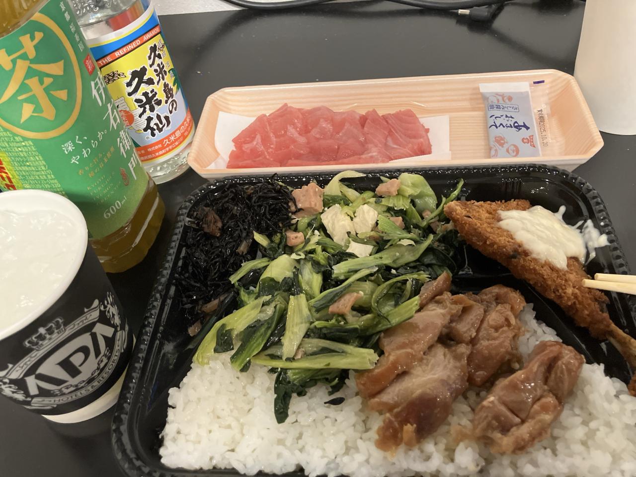 最終日の夜はうちなー弁当で部屋呑み。