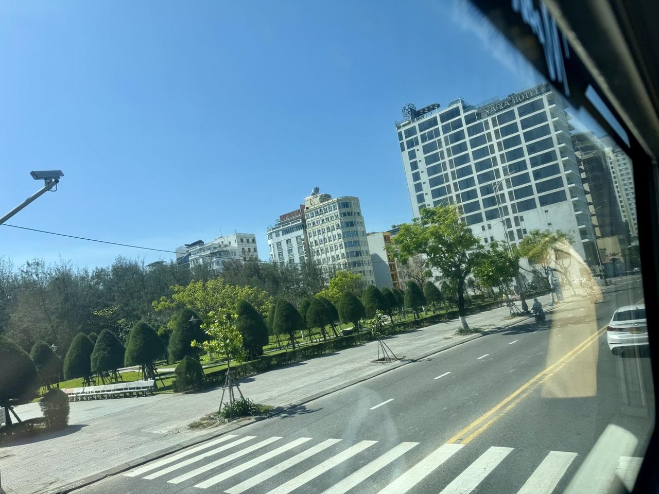 窓にはシャッターがあり日差しが眩しいので薄目に開けて外が見られた。途中の景色はますまず、湖や池、山が見える、半分は住宅、街だけど。3時ちょいでフエ到着、やれやれでした。