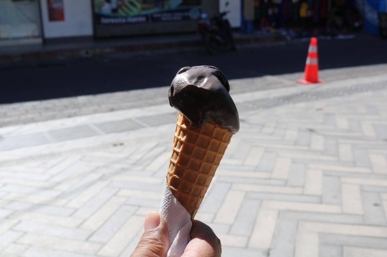 「Heladería Sarita」というグアテマラの人気アイスクリームチェーン店がお気に入りで、この通りにもお店があったので、こちらで購入。 -