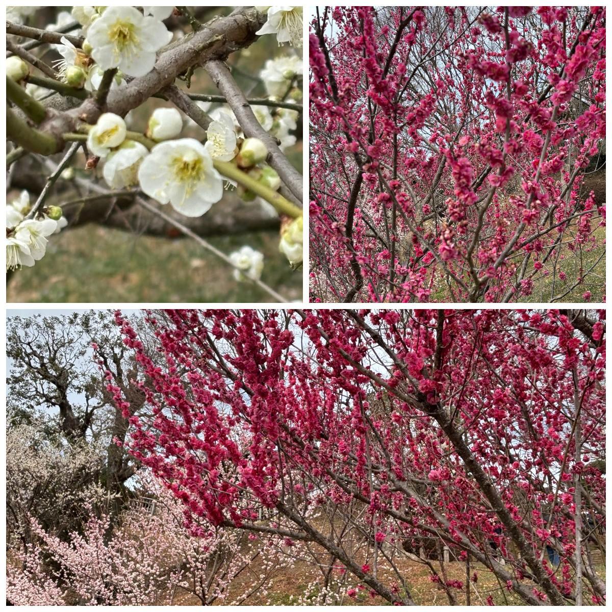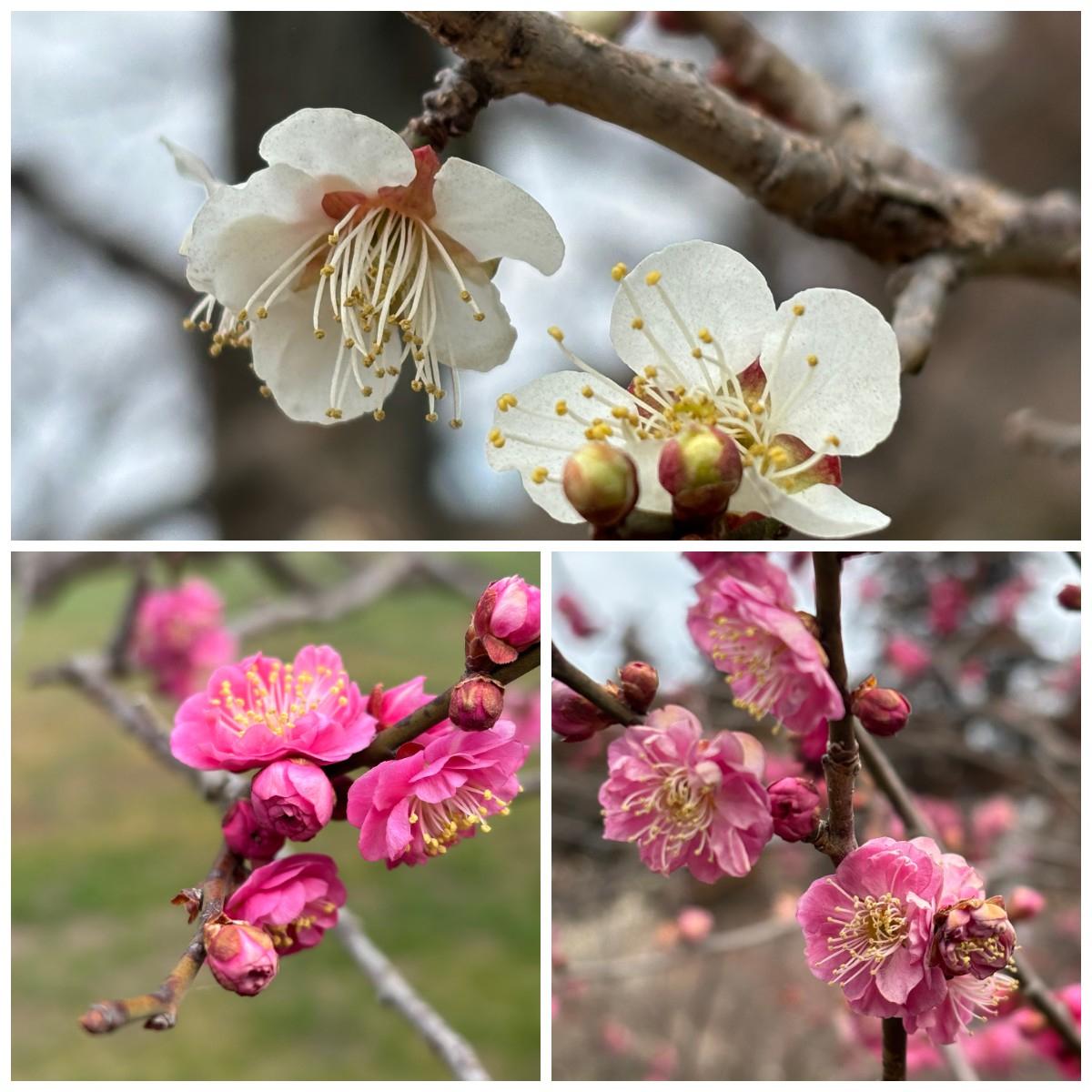 ここから4方向に道が延びており、それぞれに梅が咲いています。 -
