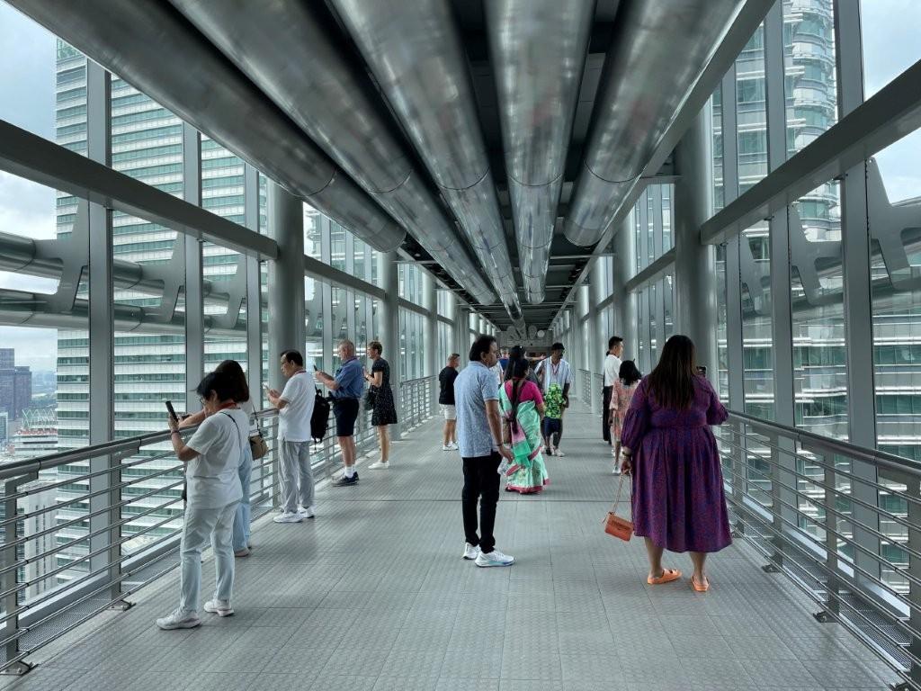 エレベーターに乗って最初に案内されたのが41階。ツインタワーの連絡ブリッジでした。