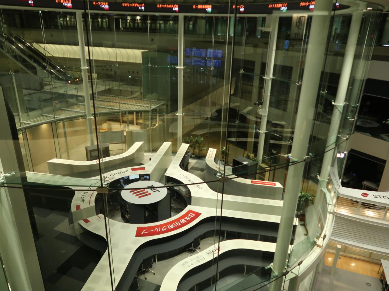 マルチディスプレイ(株価ボード)はマーケットセンターとオープンプラットフォームに設置されている。