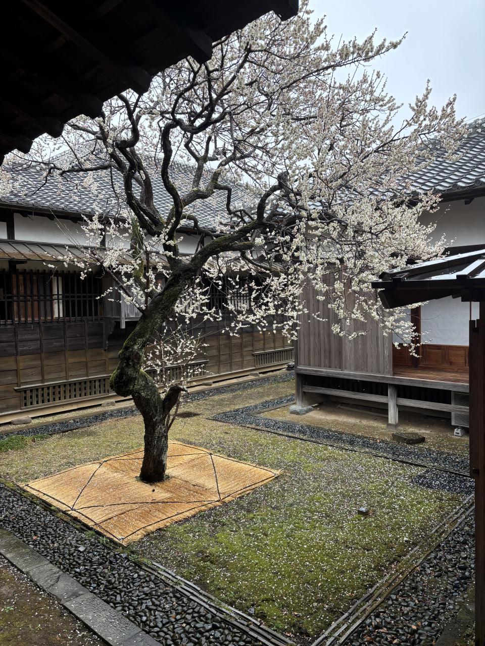 満開に咲く中庭の梅の花を反対側から・・・