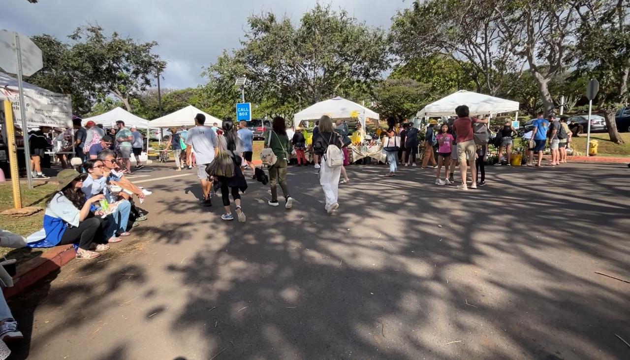 ワイキキ方面からは、ダイヤモンドヘッドロードをマカプウアベニューで左折、すぐ右折でKCCファーマーズマーケットの駐車場(カピオラニコミュニティカレッジ)でした。