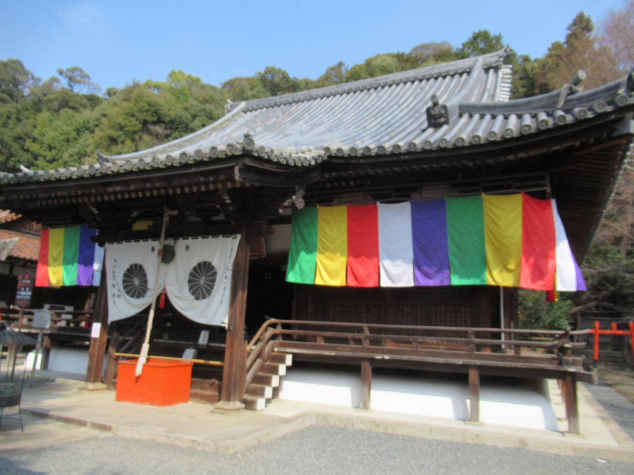 本堂に向かう参道にはのぼりが並んでますが、参拝客を見かけたのは一人だけ。本堂へ行く前にトイレをお借りしました。で、天王山への登山道が見当たらないので本堂の方へ進んで行きます