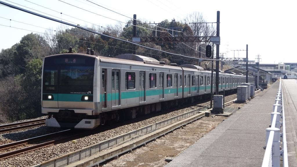 朝ラッシュを終えて、唐木田の車庫へ帰るJR乗入車E233系。