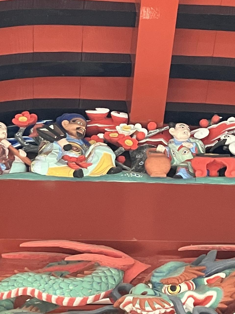 彩色彫刻に混じって 中国の彫刻が施されています