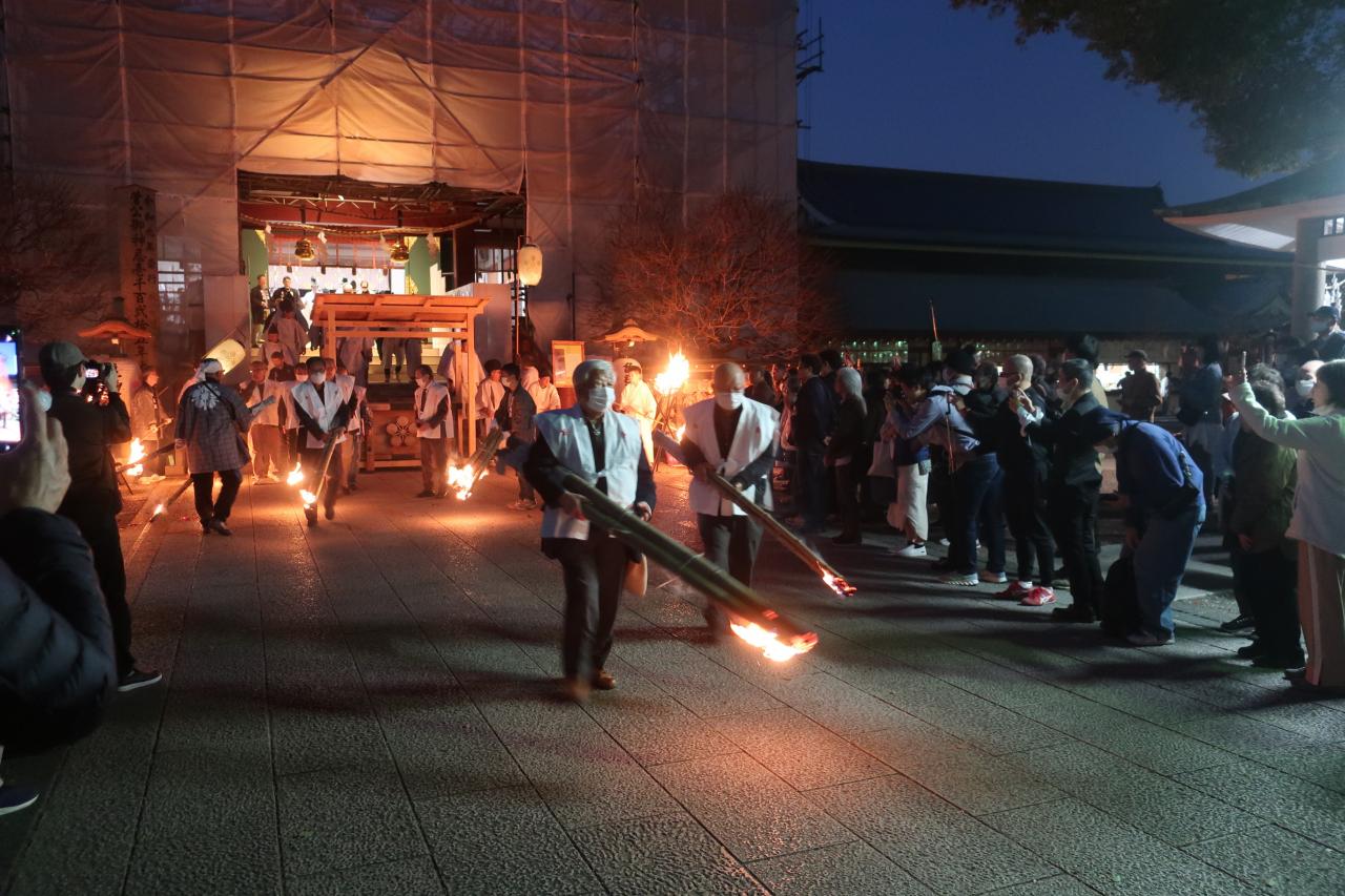 松明を持って境内を歩き始めます。