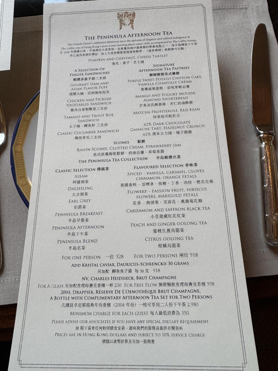 午後はペニンシュラホテルのアフタヌーンティーへ。