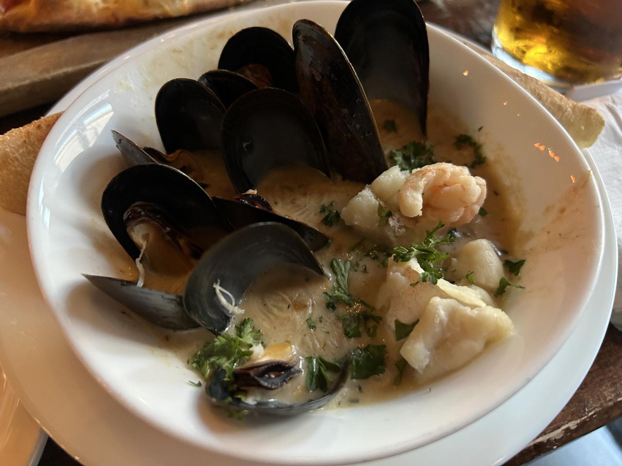 そして、ニューファンドランドに来てから食べまくっている「シーフード・チャウダー」…前夜と同じく、ムール貝をはじめ具だくさん。もしかしてこれがセント・ジョンズ・スタイル?
