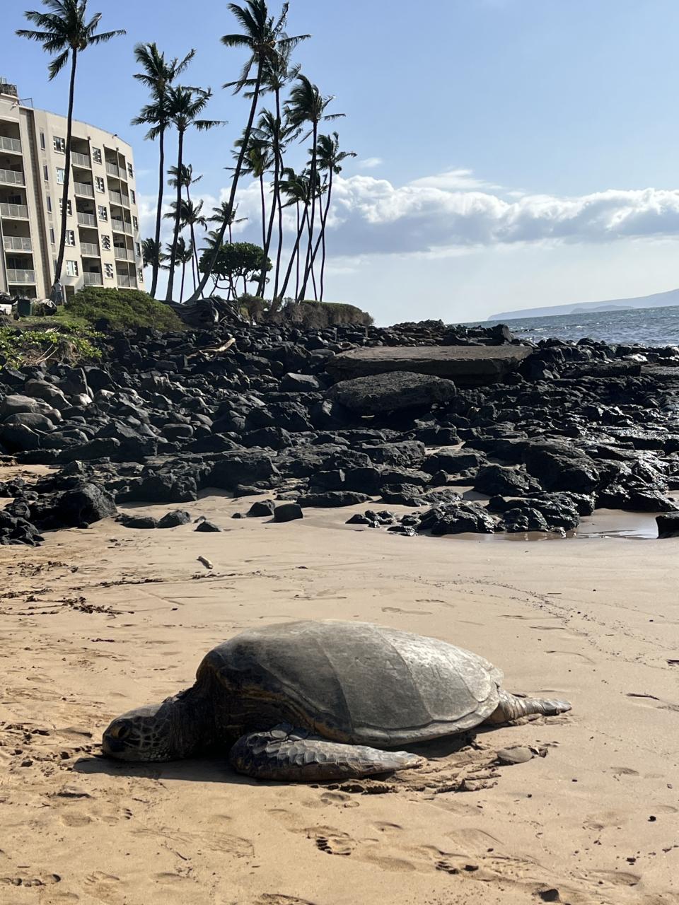 ビーチの端にホヌが!