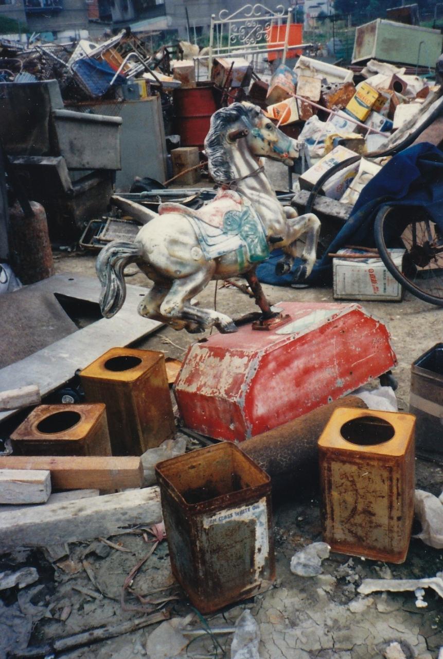 コインを入れると、揺れたり前後に動いて子どもたちを楽しませるこんな電動遊具が、よく商店の店先に置いてあったのを思い出す。 -