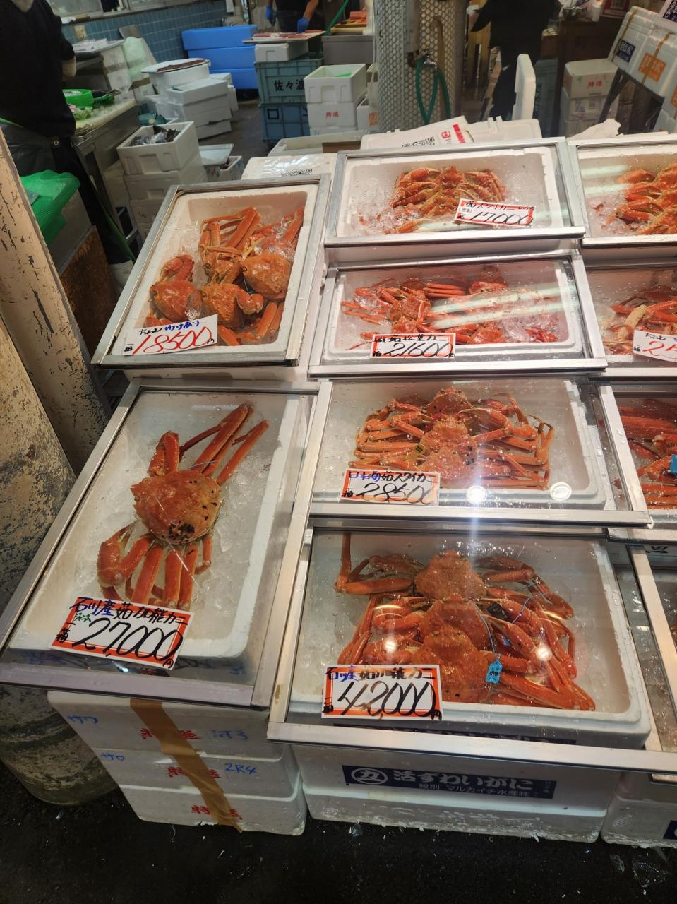 カニは買えませんが、母が普段使い用の昆布やらカマボコやらをたくさん買い込んでいました。やはり東京のスーパーで買うよりは安いみたいです。近江町市場 名所・史跡