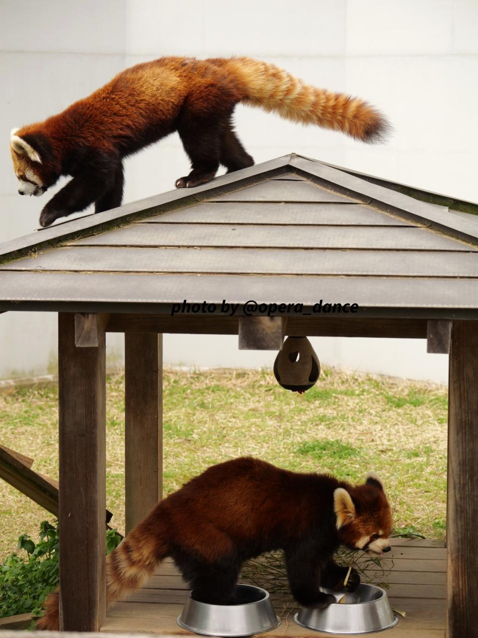 それもあってかレッサーパンダのみなさん、ちょっとだけ残業のご様子。 -