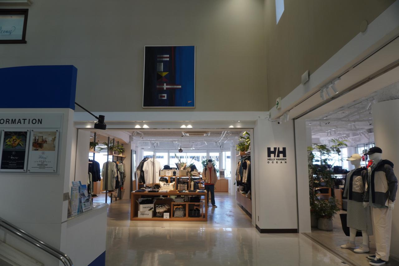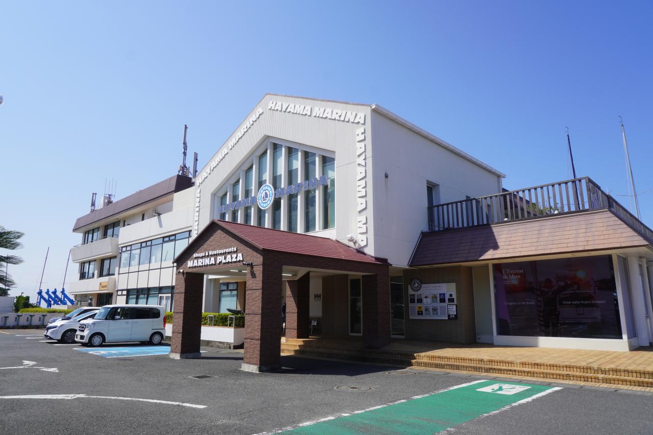 葉山マリーナプラザという建物が建っていて、これは葉山マリーナに併設されたレストランやショップが入る商業施設。 -