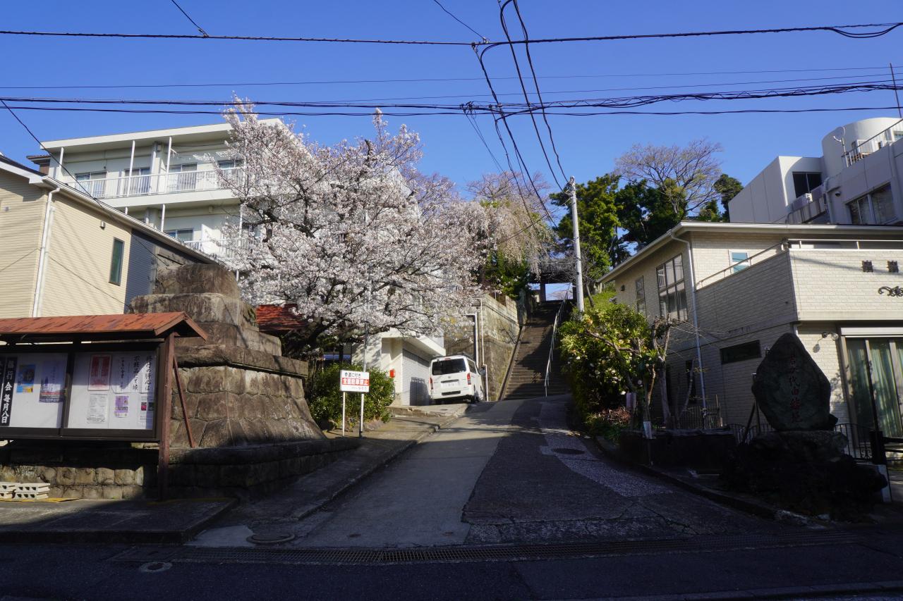 浪子不動は、高養寺という寺。名前は葉山ゆかりの政治家、高橋是清と犬養毅からというので歴史はさほどではないような。国道でも歩道が整備されているのはここまでなので、そういう意味だとここは市街の端っこ。披露山公園へ抜けるハイキングコースの上り口でもあります。