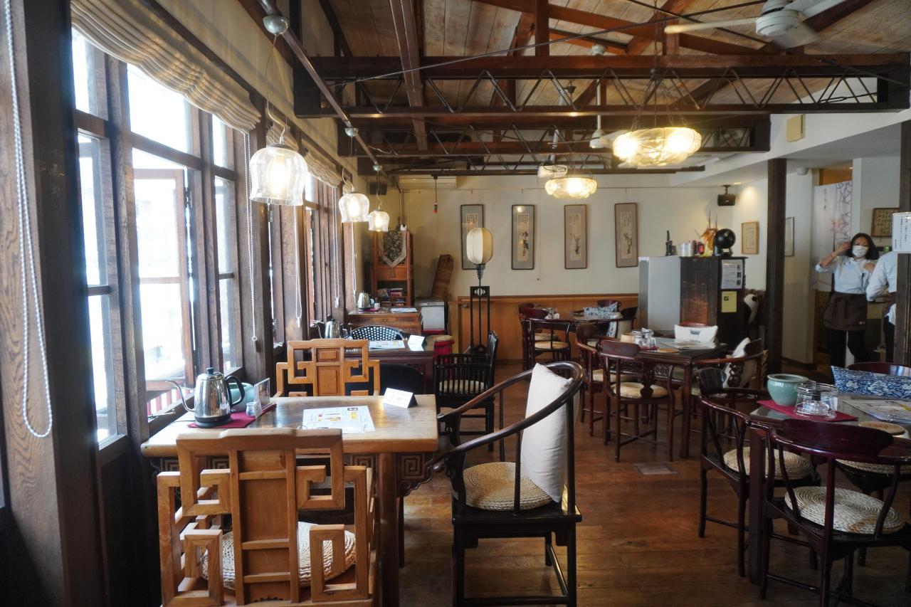 悟空茶荘は一階が売店、二階が喫茶コーナー。 -