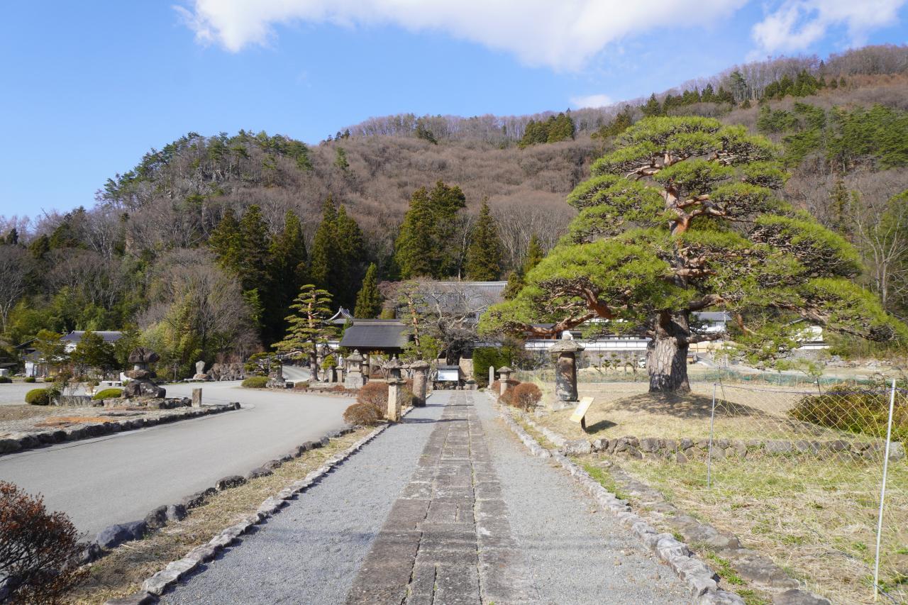 通りから寺に向かう参道は龍岡城の御庭の松を移植したという老松や立派な石畳で美しさも備えます。