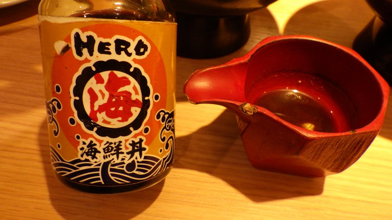 この店では、左:「海鮮丼用しょう油」と右:「おさしみしょう油」がありました。小皿に入れて、味比べしましたが、良く判りませんでした。大漁食堂 HERO海 熊本駅店 グルメ・レストラン
