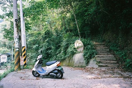 三義駅前のレンタルバイク屋さんで借りた50ccのバイクに乗車中。旧山線沿いに走る台湾の田舎道を進んでいきます。