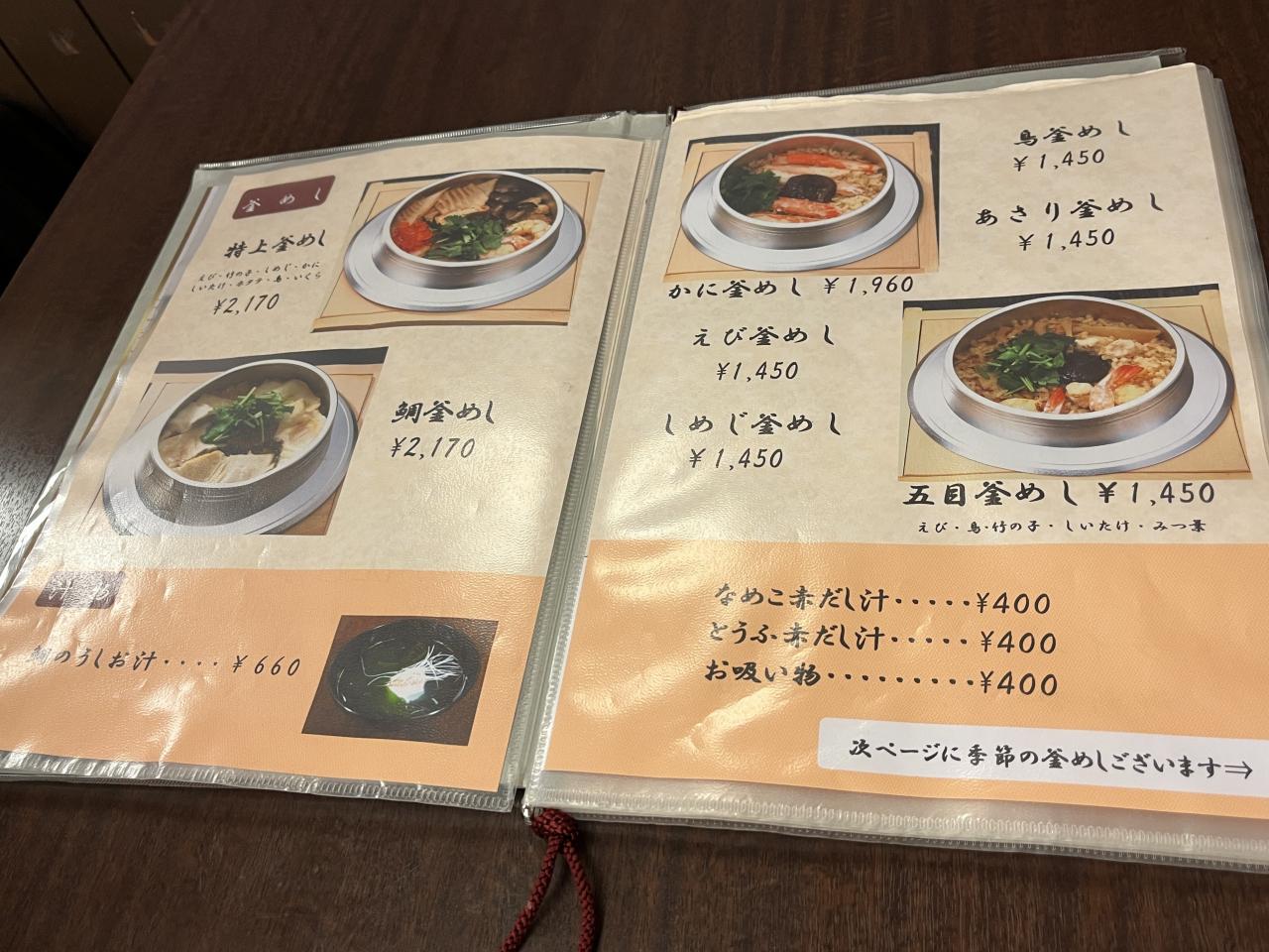 五目釜めしにダンナはなめこ椀、わたしはお吸い物(各400円)をつけました。 -