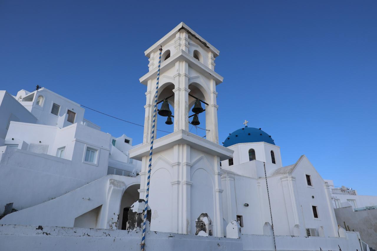 サントリーニ島の鐘楼のシルエットが美しい!