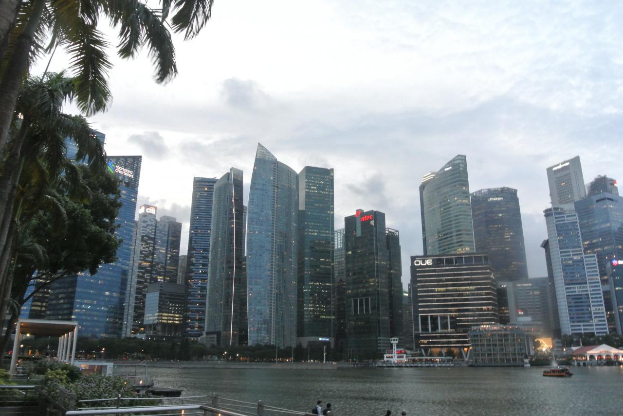 マリーナ湾ごしに高層ビル群が建ち並ぶシンガポールらしい景色。