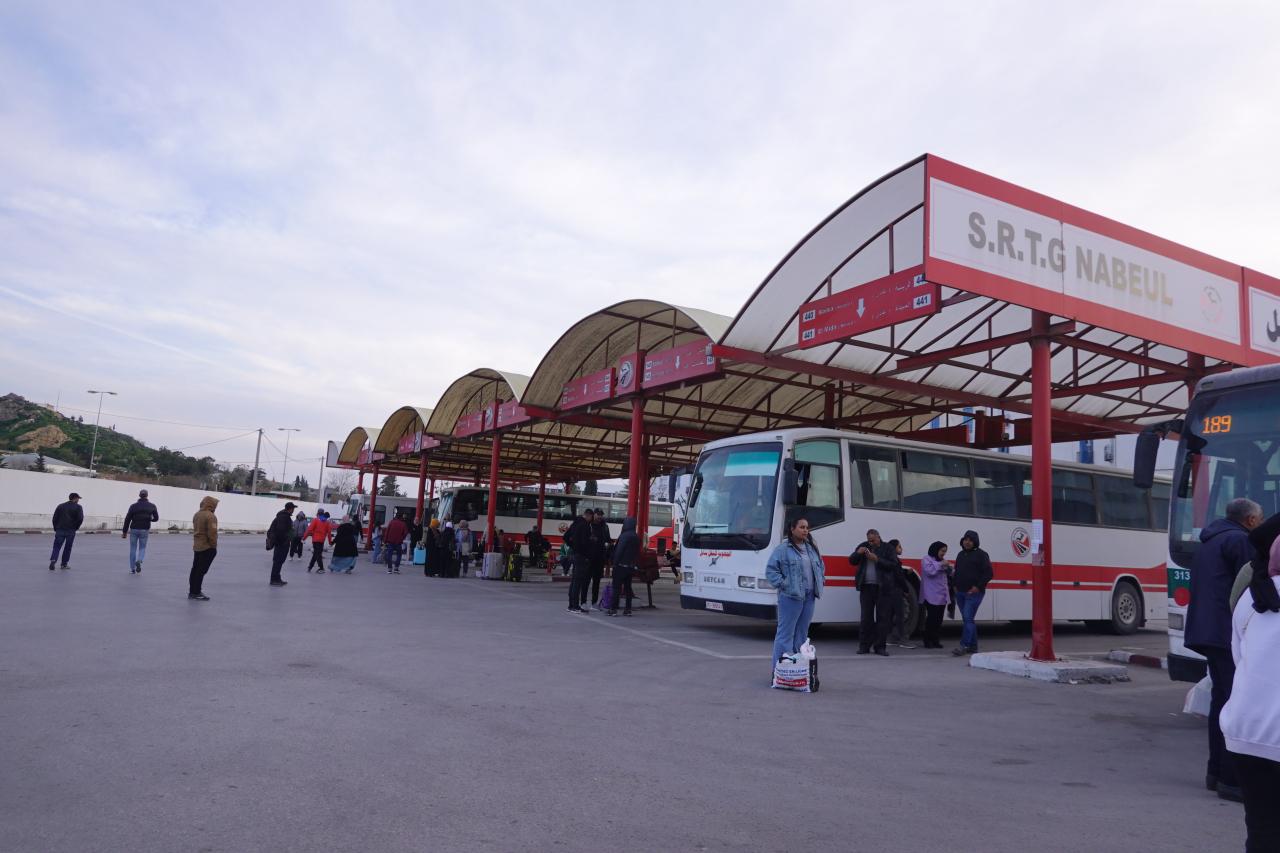 チュニス行の乗り場がわからなくて、この辺あたりだという場所で待っていると、バスが近づいてくると、近くにいた人たちは一斉にバスに向かって走っていき、我先にバスに乗り込みました。きちんと並ぶ習慣はないみたい。 -