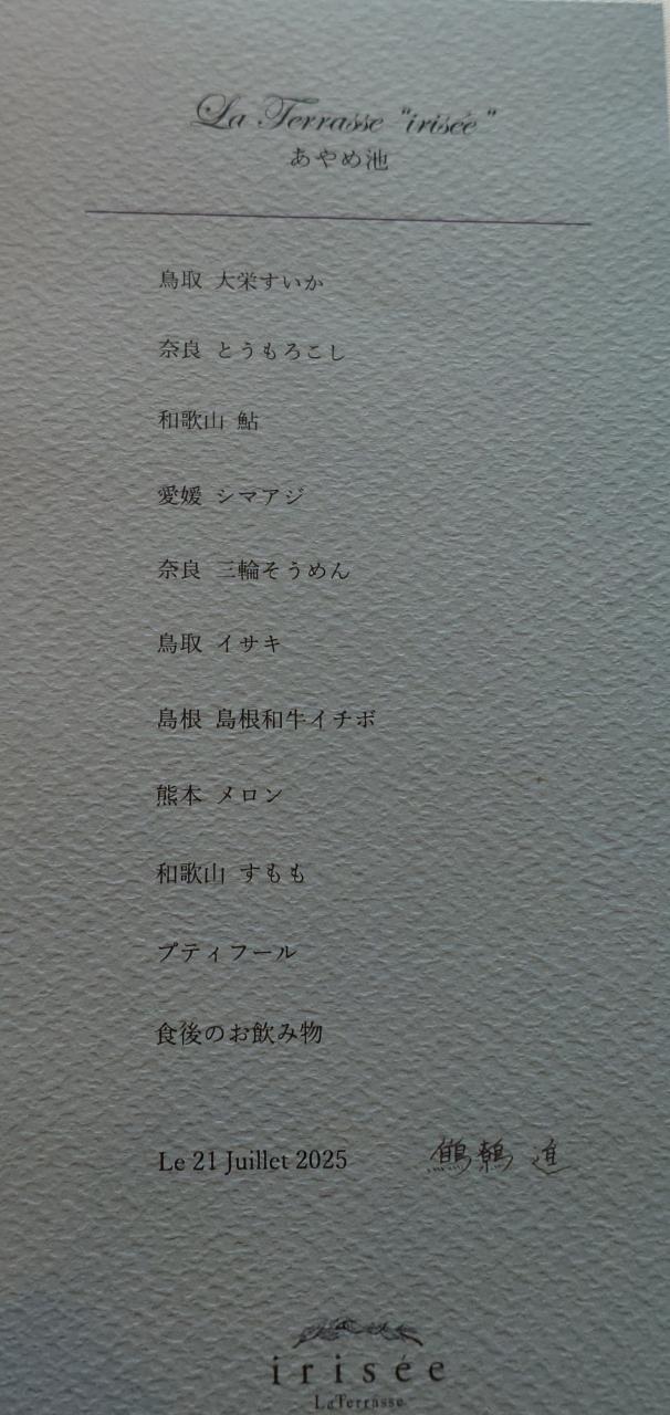 1日目は一人で近鉄郡山駅下車で大和郡山の観光、2日目は私たち夫婦だけで、食べログフレンチ百名店の「ラ・テラス・イリゼ」でランチをしました。