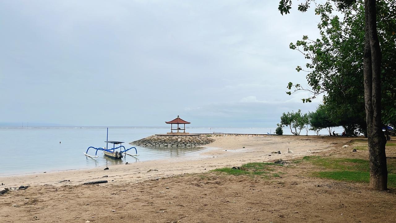 1時間のヨガを終えて、のんびりした雨季のサヌールビーチをぶらぶらお散歩。
