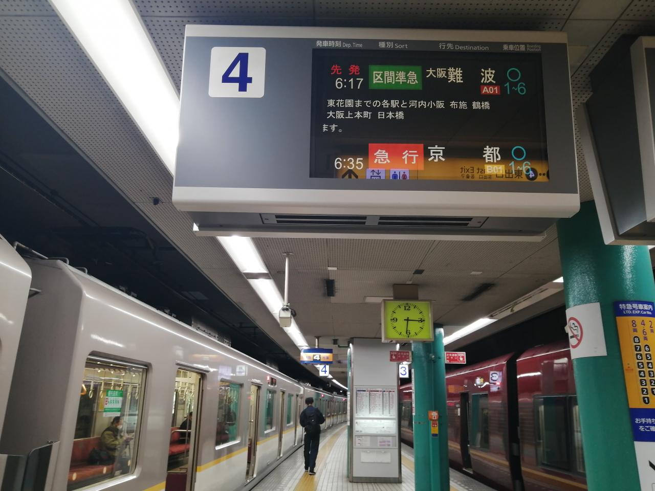 大和西大寺駅に到着し、6:39発の電車で橿原神宮前駅に移動します -