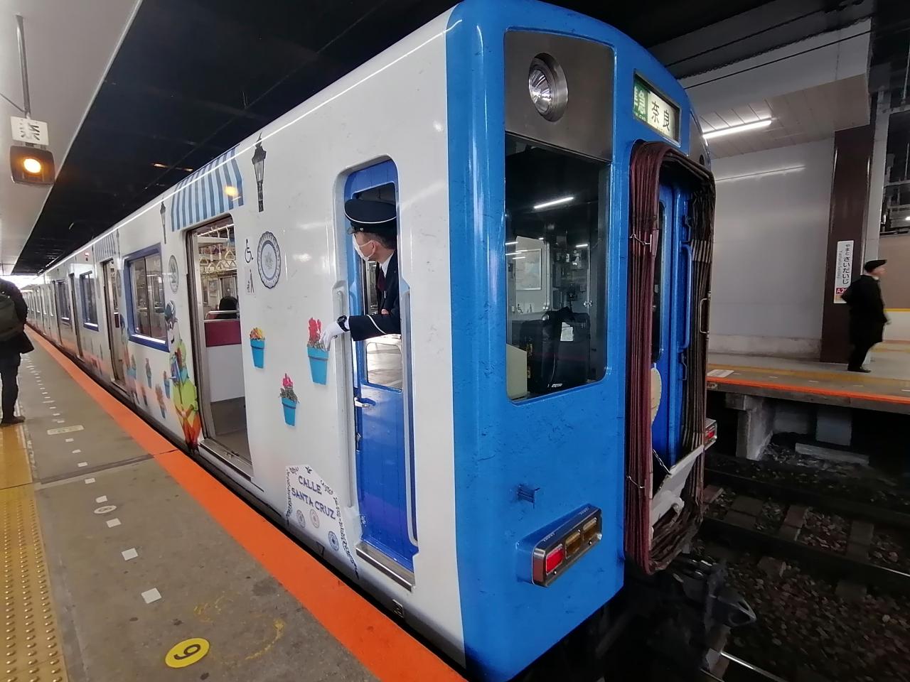 橿原神宮前駅に到着し、7:21発の吉野駅行きの電車に乗り換えます -
