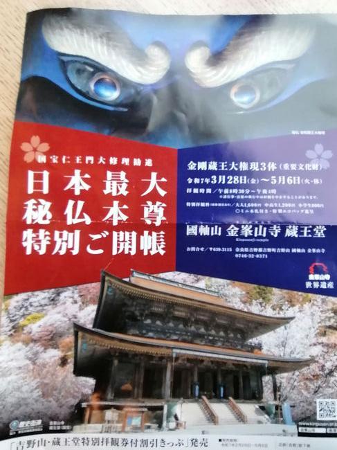 世界遺産・国宝の「金峯山寺仁王門」の大修理勧進のために、同じく世界遺産・国宝の「金峯山寺本堂・蔵王堂」の秘仏ご本尊金剛蔵王大権現3体の特別ご開帳をしています。かなり昔に御開帳の情報をみて公開は10年くらいだったのでもうやっていないかもと思っていましたがまだやっていてよかったです。