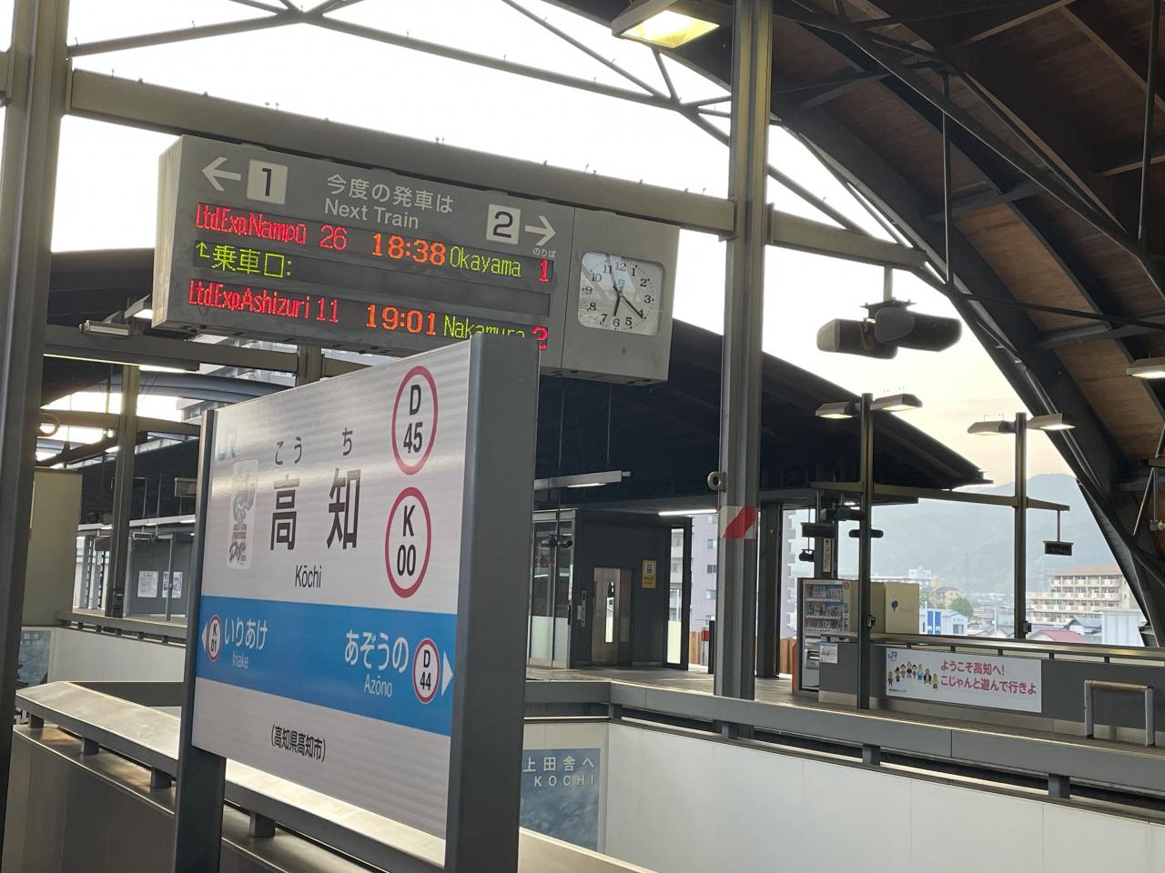 はりまや橋停留所から高知駅まで路面電車に乗ります