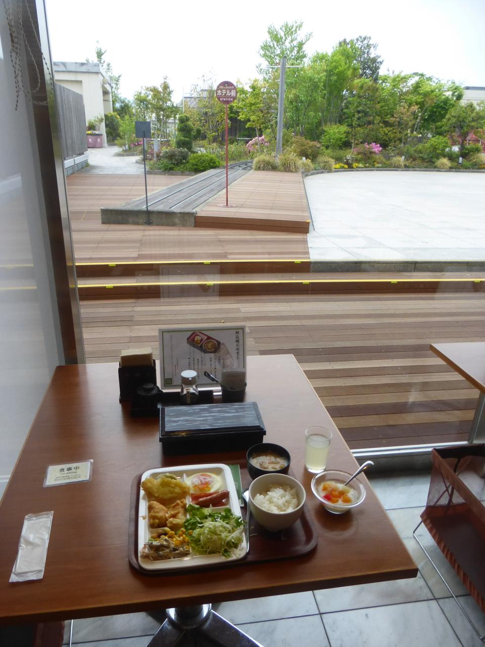・ホテル内の庭の食卓 四季で箱膳+ビュッフェ朝食