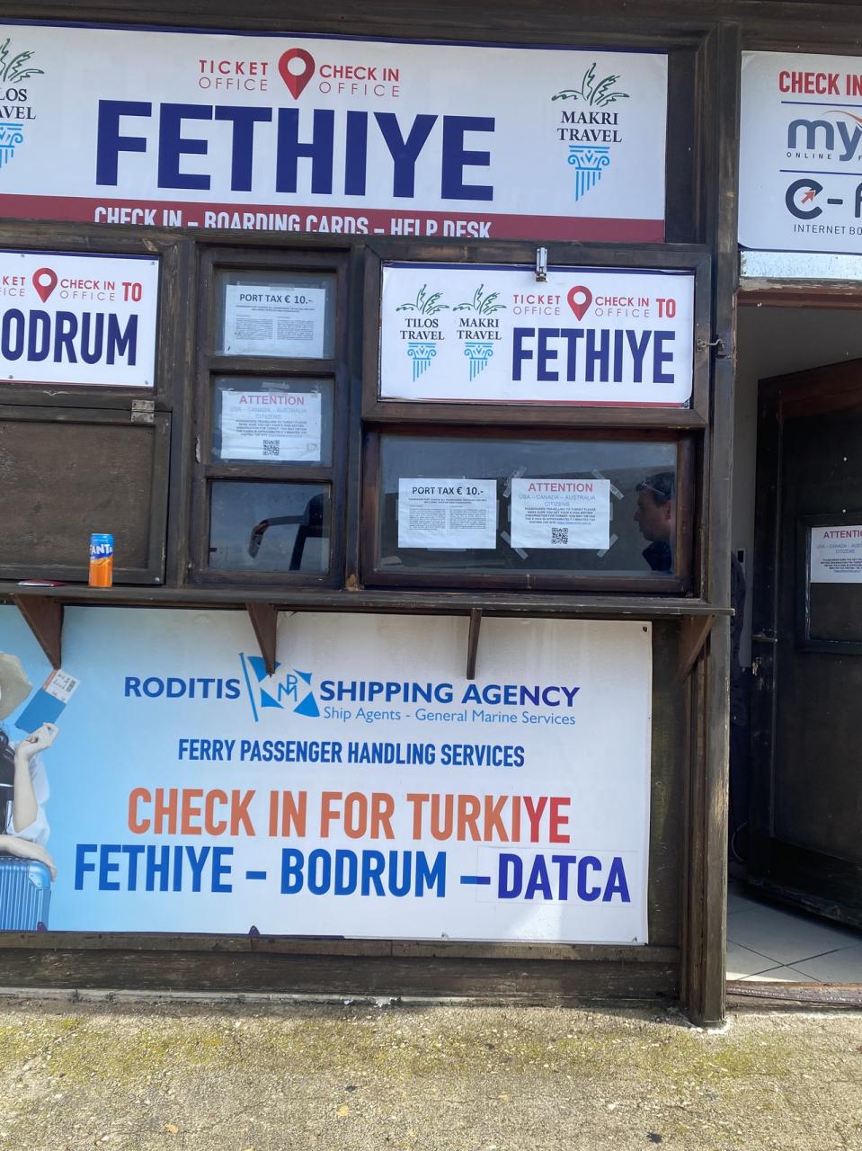 ふと、このフェリー乗り場の入り口に「Fethiye」と書いた小屋があるのが気になっていたので、小屋の方に「昨日買ったんですが、チケットがないんですけど」と言ってみると、「パスポートは?」と言うので渡すとチップを読み取り、チケットを渡してくれました。どうやらチケットを持っていてもここで交換しなければいけないようです。