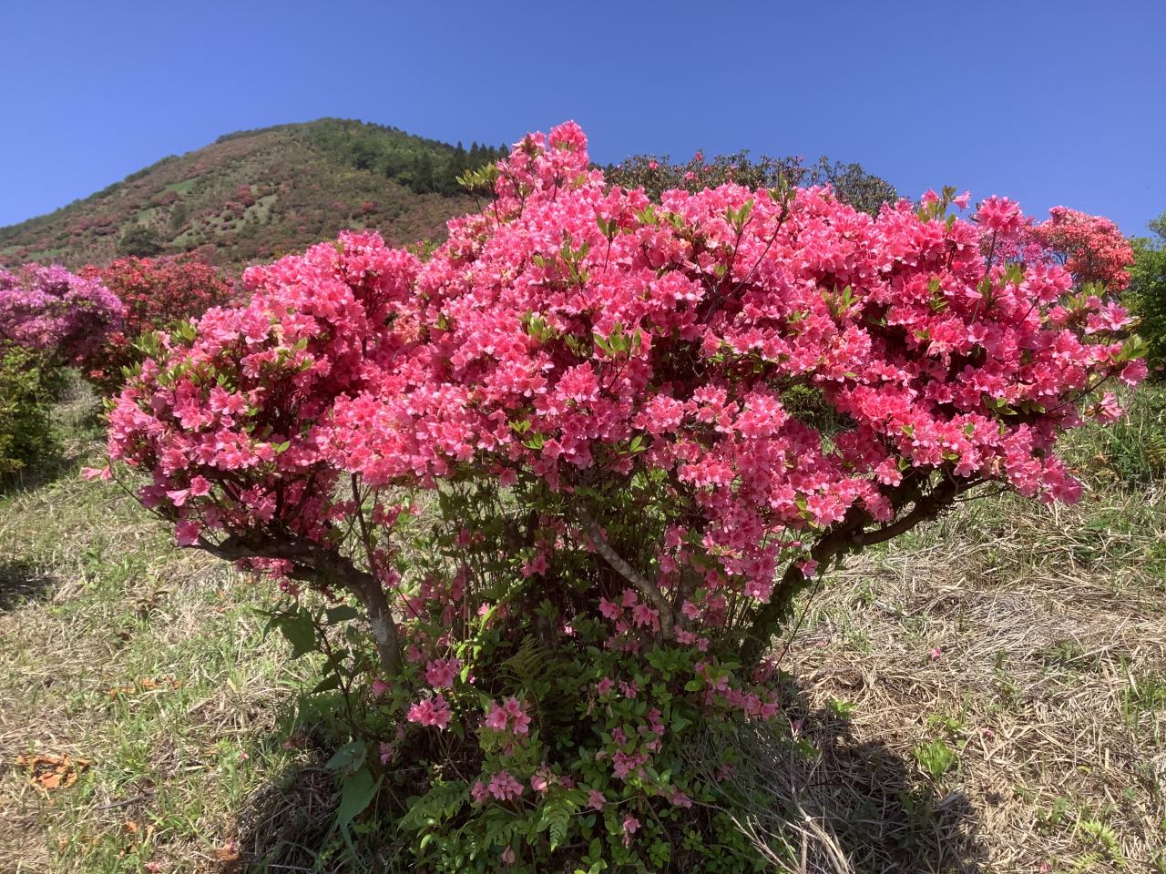 高峠は標高550mに位置する霧島錦江湾国立公園です。垂水市の北東に位置するこの峠一帯はサタツツジが約100種10万本も自生し、春になると山全体を赤やピンクに染め、多くの観光客で賑わいます。今年は4月26日~4月27日までの期間は高峠春のツツジ祭りと銘打ちイベントが開催されました。今日は天気も良くて孫を3人連れて家内と孫は高峠山頂まで登りました。私は写真を撮って回りました。5月の連休までは持たないかも知れませんね。