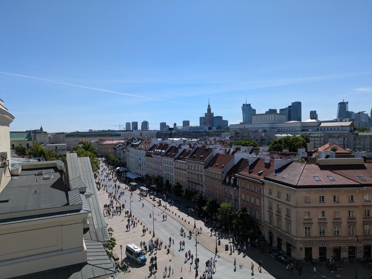 クラクフ通り方面。遠くに文化科学宮殿が見えます。