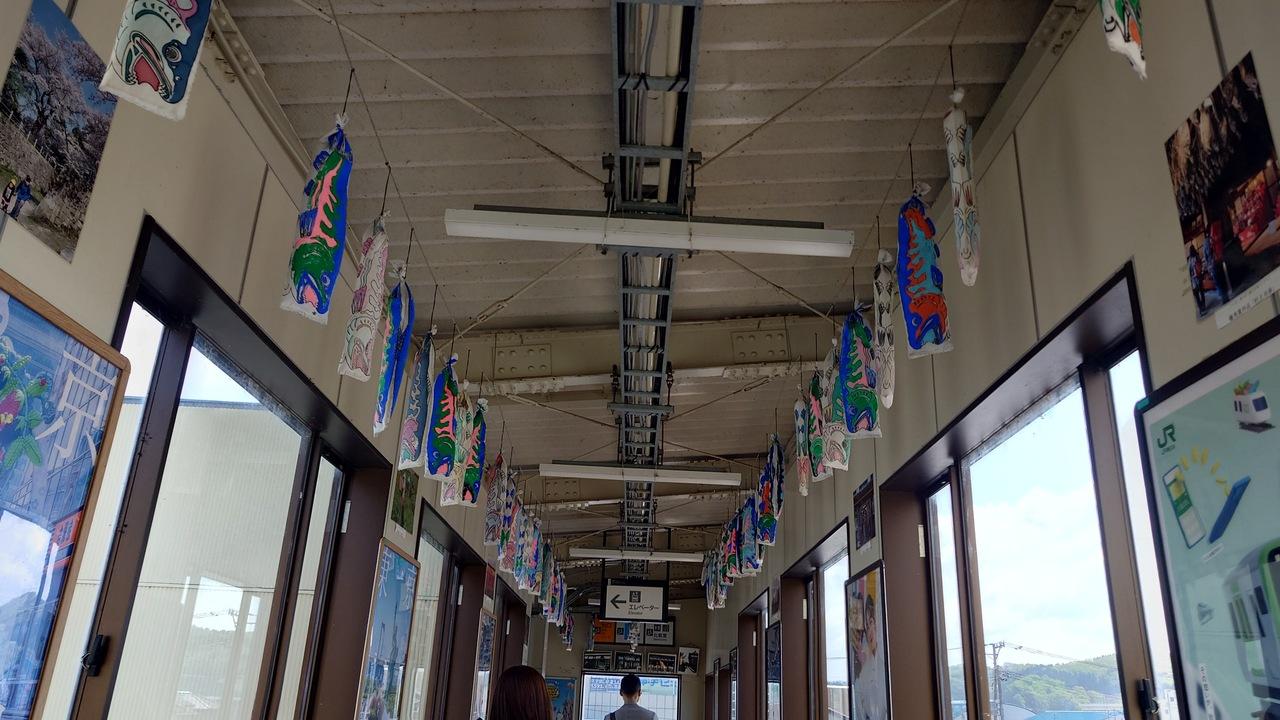 駅についたら天井に鯉のぼりかと思いましたが、鮭でした! -