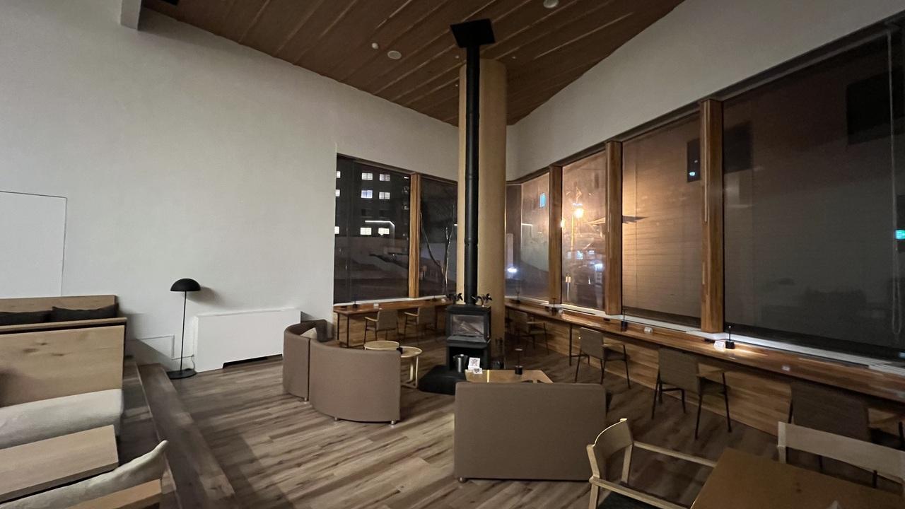 一階のカフェ兼ラウンジ。温かみのあるデザインです。