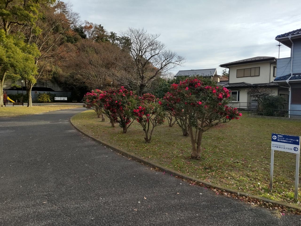 正面の奥には野島山を貫通する掩体壕が見えてますが、現在入口は高い塀で閉鎖されて内部は見学できません。野島公園 公園・植物園