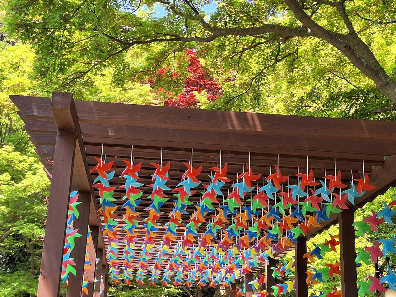 色鮮やかな、かざぐるまのトンネルが出来ていて、とても綺麗でした。 -