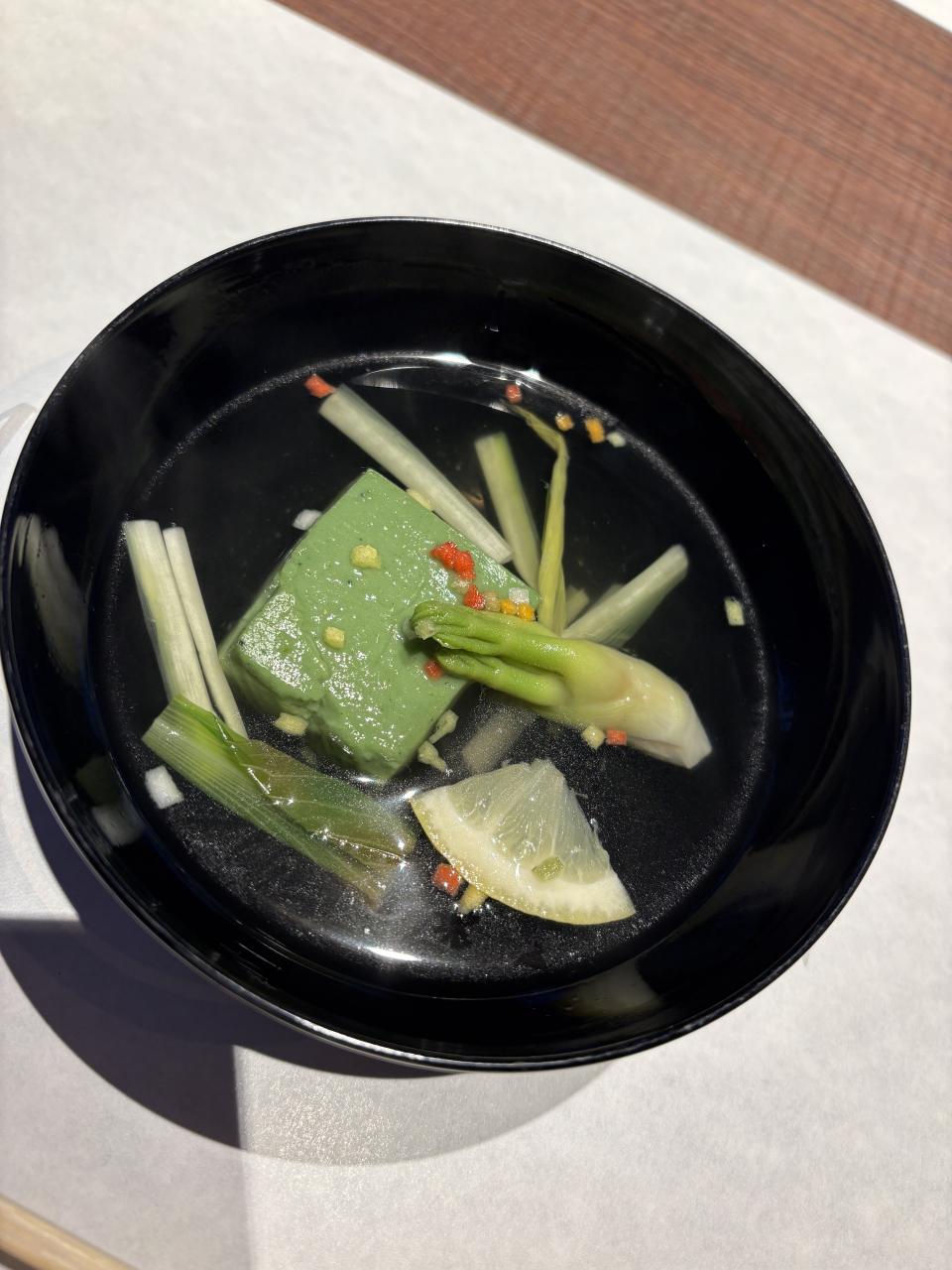 周りに水が張ってあり、席に着くと水面と顔が同じ高さで不思議な感覚です -