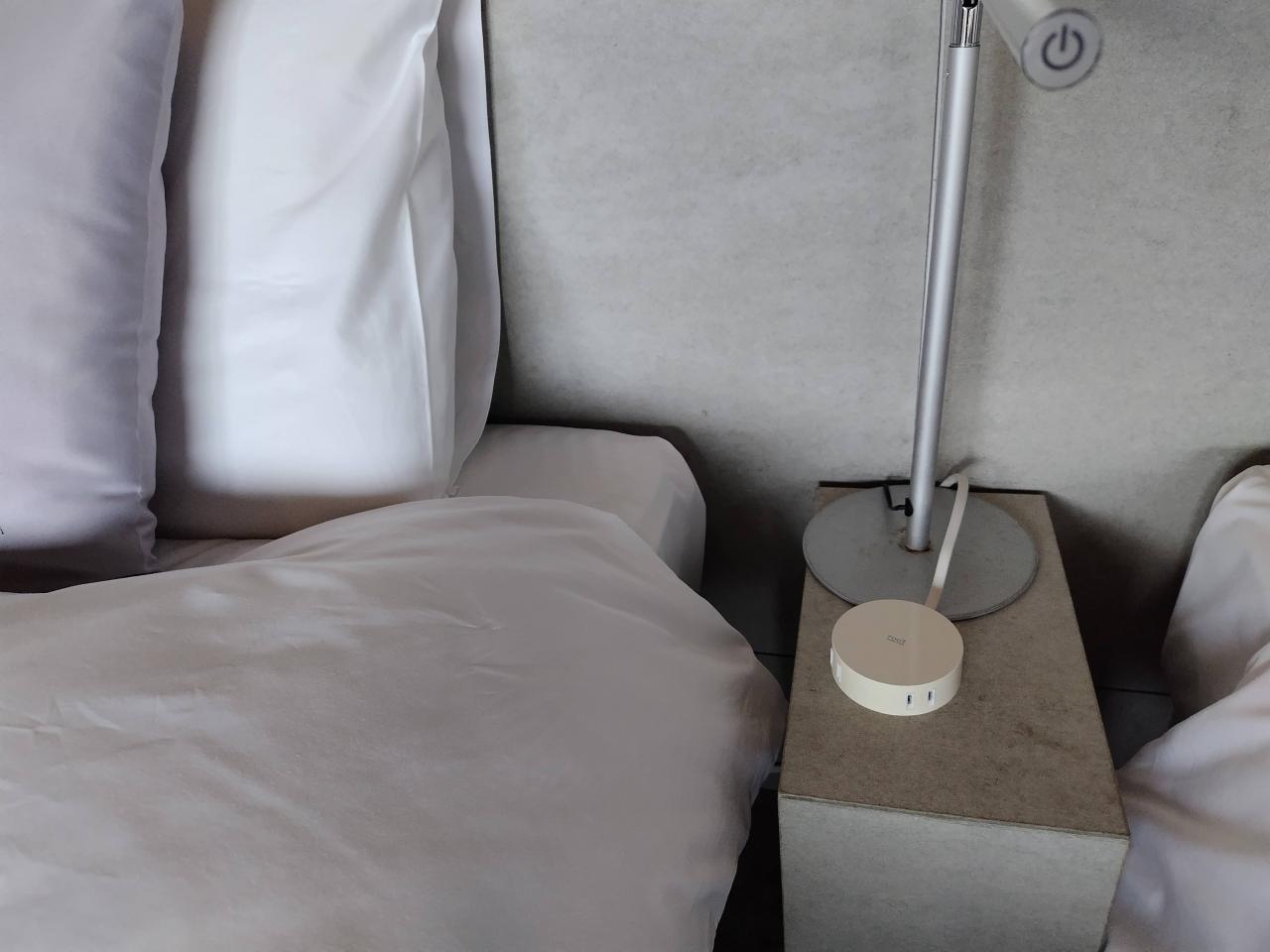 コンセントはベッドサイドやサイトテーブルにあるものの、ベッドサイドのには USB の口はない。