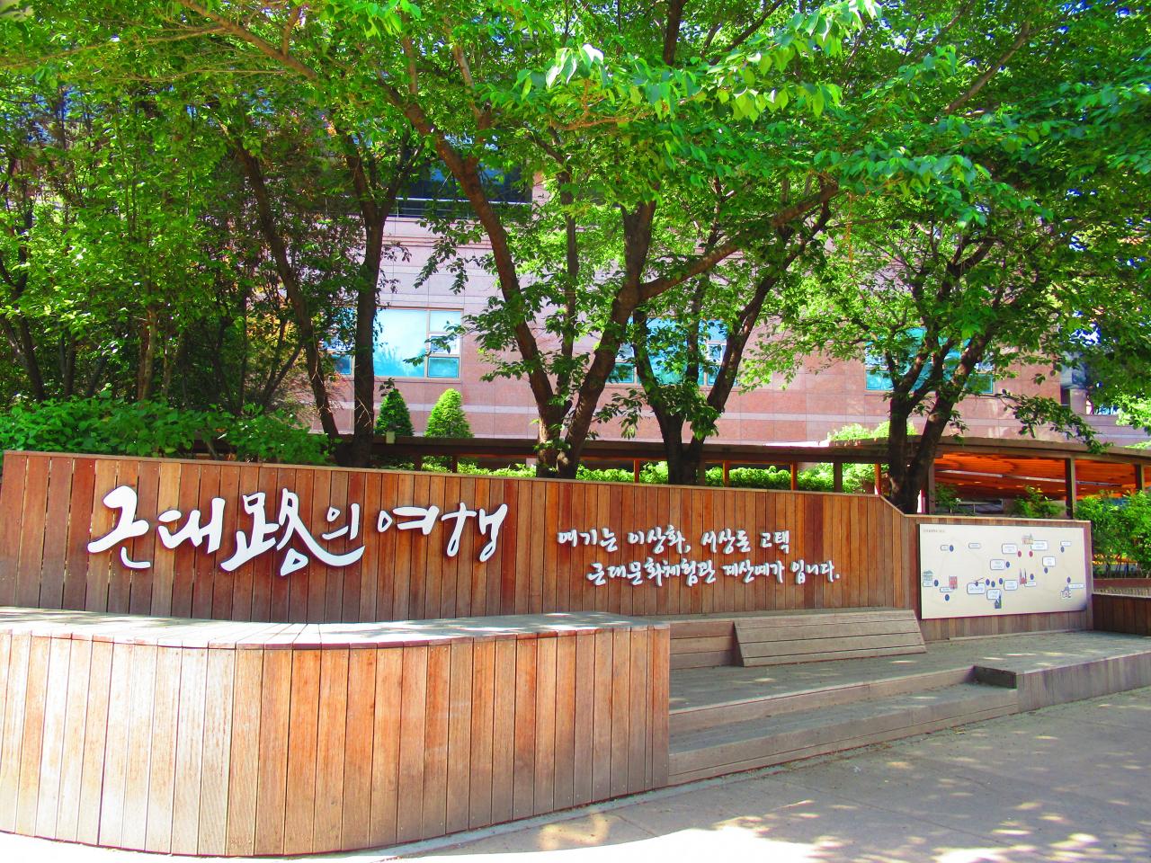 絵が展示されていたり、説明文などが壁に書かれいたりする。大邱は本当に壁面に何かを展示したり、アートを描いたりしている場所が多い。