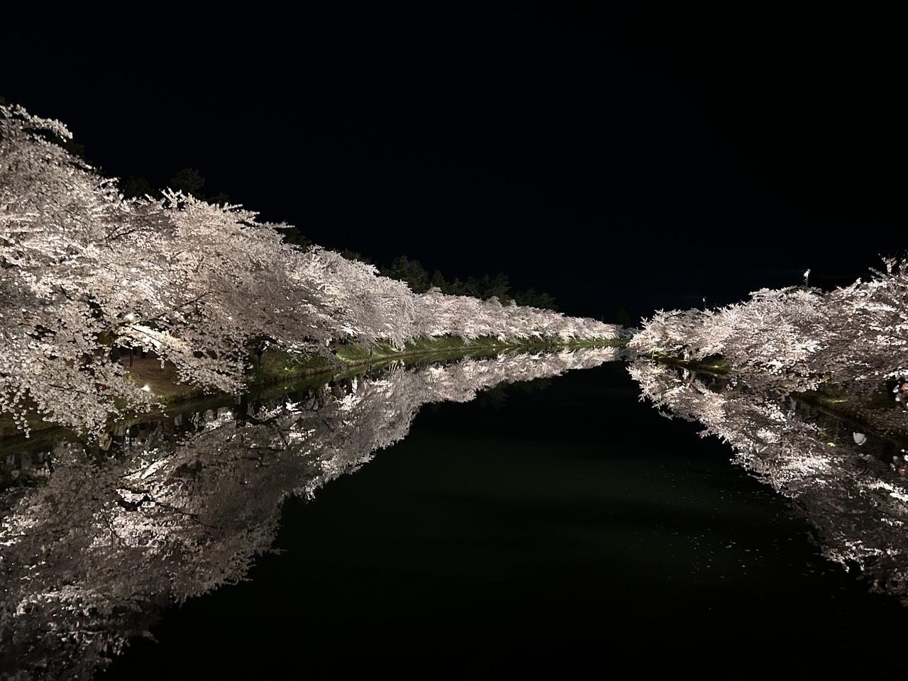 弘前城の桜が綺麗なのは、ライトアップを白色灯ではなく黄色灯でしている演出もあるなと感じました。