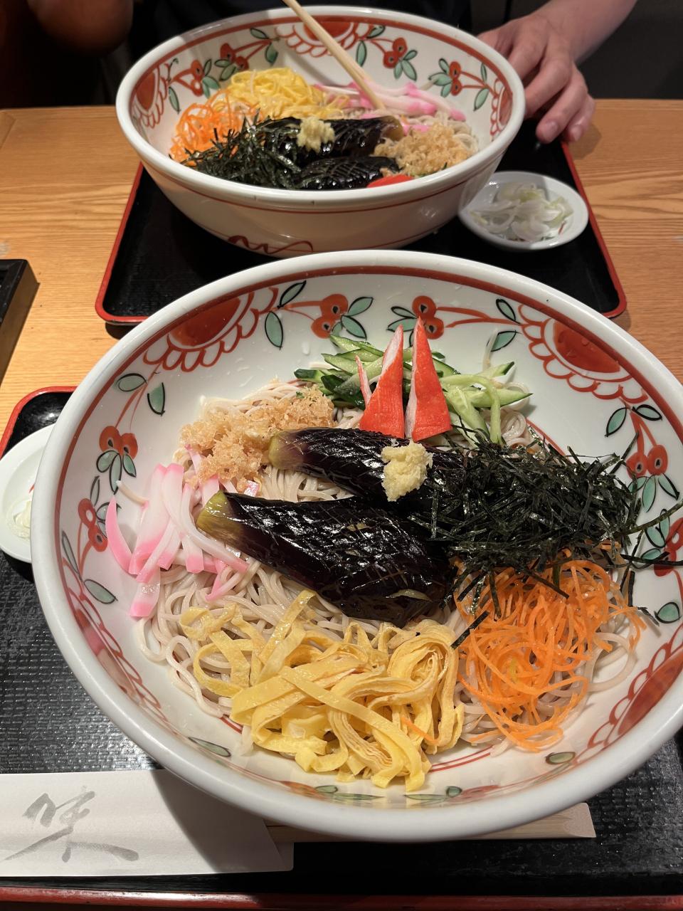 冷やし中華のお蕎麦版みたいな、色とりどりで見た目からおいしそう。