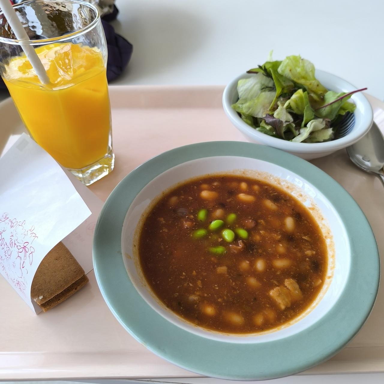 ちょっとお昼には早いけど、豆スープとみかんジュースに。。。